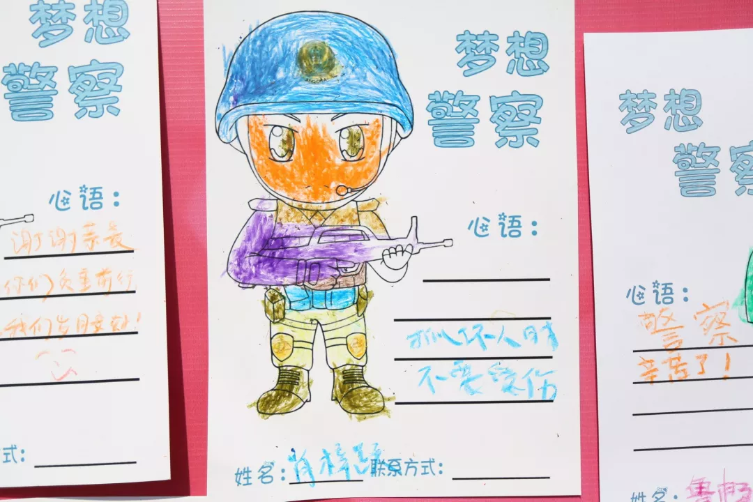 每一年,可爱的孩子们都会在这里画出他们心目中的警察,留下暖心的话,许下“警察梦”。