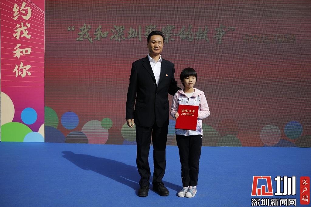获得“我和深圳警察的故事”征文比赛特等奖的小朋友上台领奖。