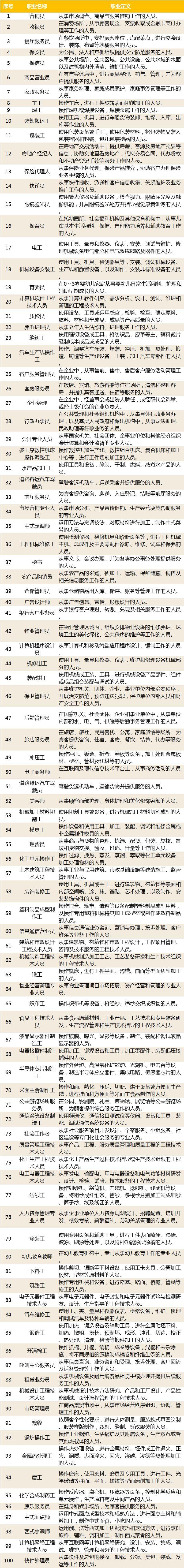 重点来了,到底是哪100个职业短缺呢?