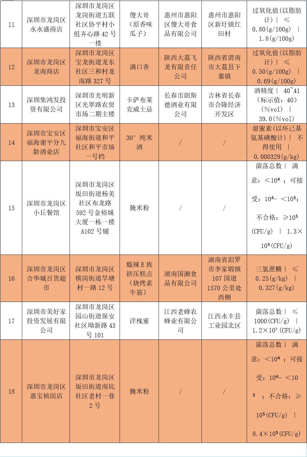 本次不合格食品具体信息如下