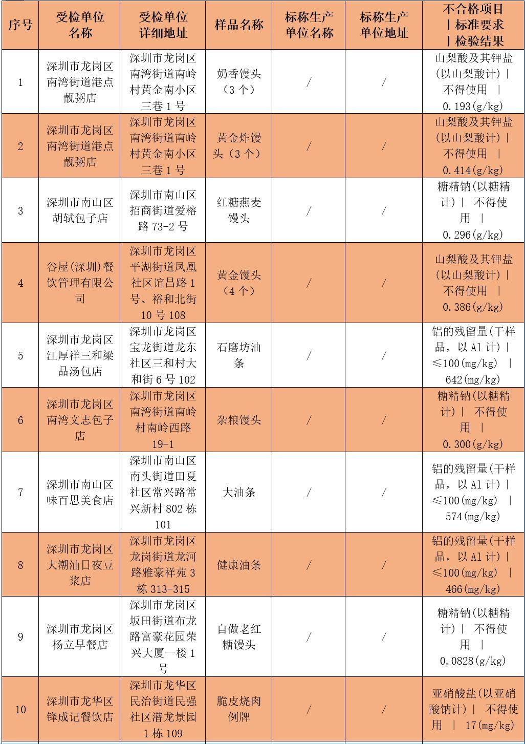 另有2批次油条不合格,不合格项目为铝的残留量,分别是: