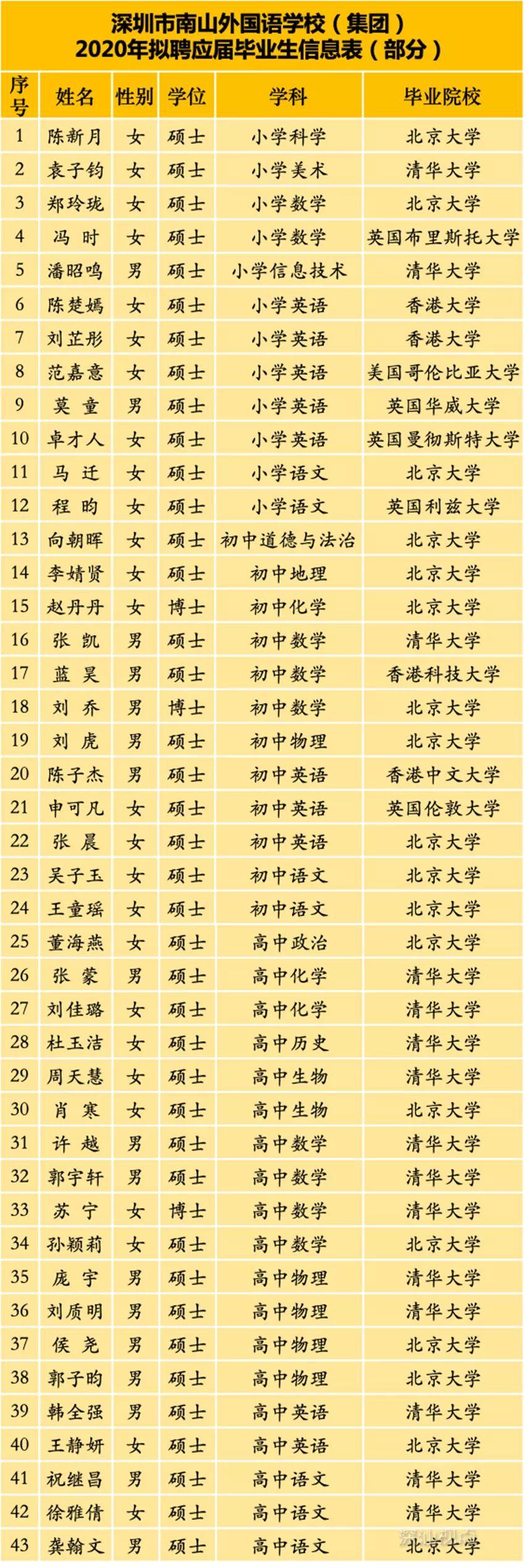 招聘单位:深圳市南山外国语学校(集团)深汕学校(九年一贯制)