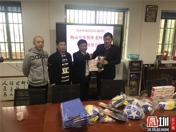 见圳客户端、深圳新闻网12月3日讯 (见圳客户端、深圳新闻网记者 潘宝仪 通讯员 张庆亮) 近日,梅山中学一行十四名教师,在钱飞副校长的带领下,前往梅山中学退休教师郭蓉老师支教的河源市和平县实验中学送教,并赠送文体耗材等学习用具,用实际行动积极响应上级部门的教育精准扶贫政策。