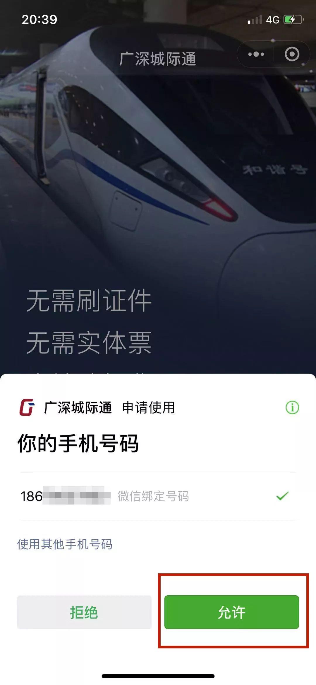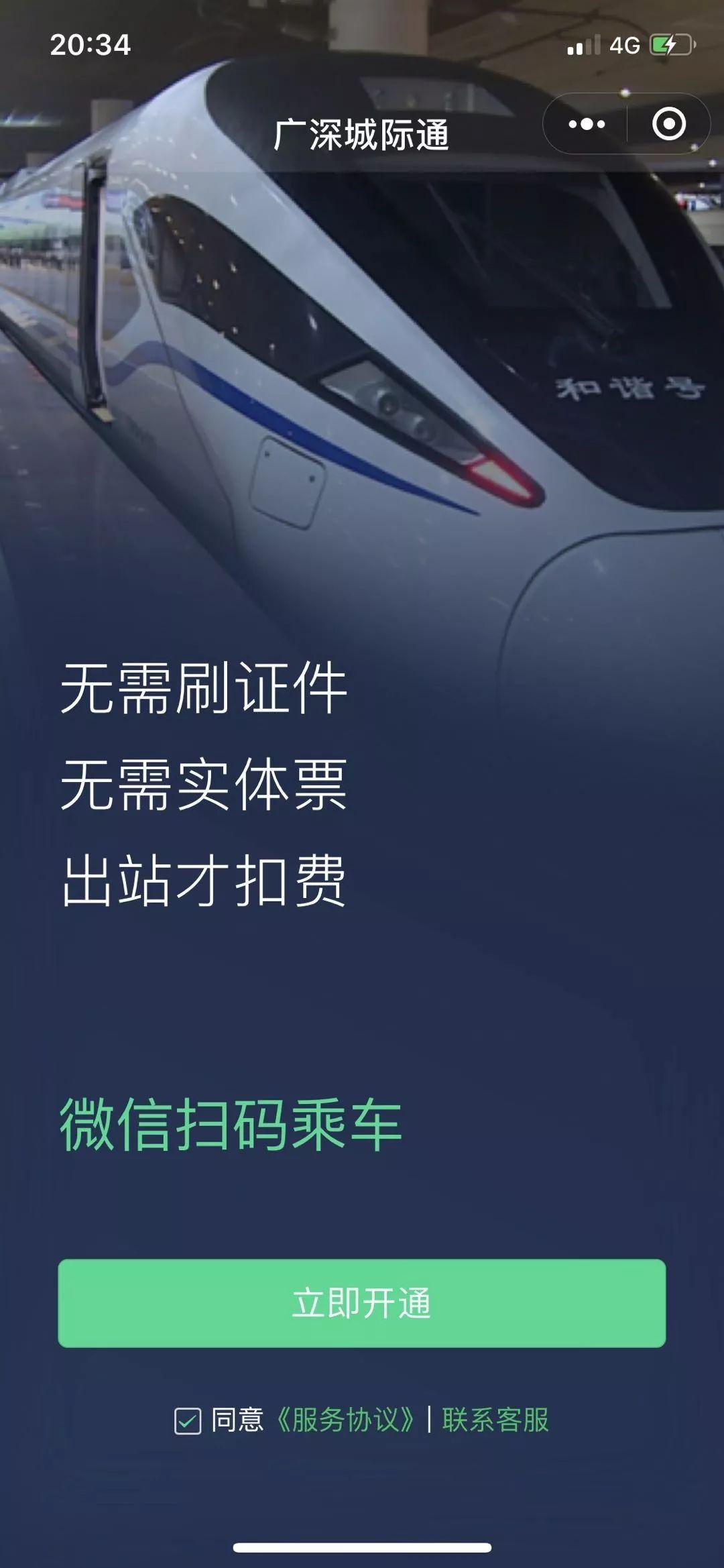 微信搜索或线下扫码,进入小程序“广深城际通”,点击“立即开通”,授权手机号码允许使用。