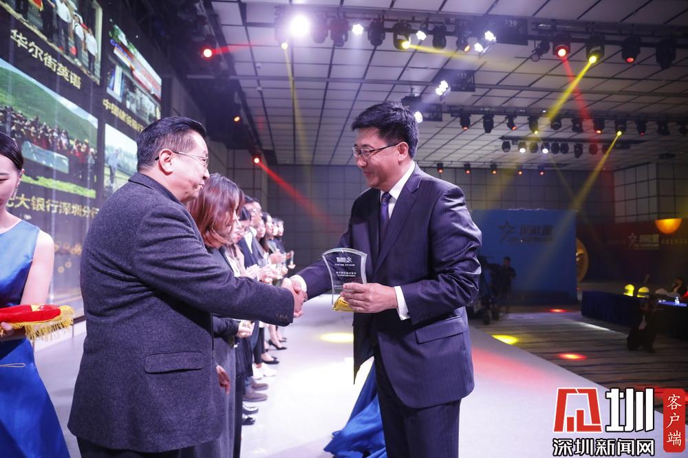 深圳报业集团社长助理、深新传媒董事长吉书龙为荣获“年度公益先锋力量”的单位代表颁奖。