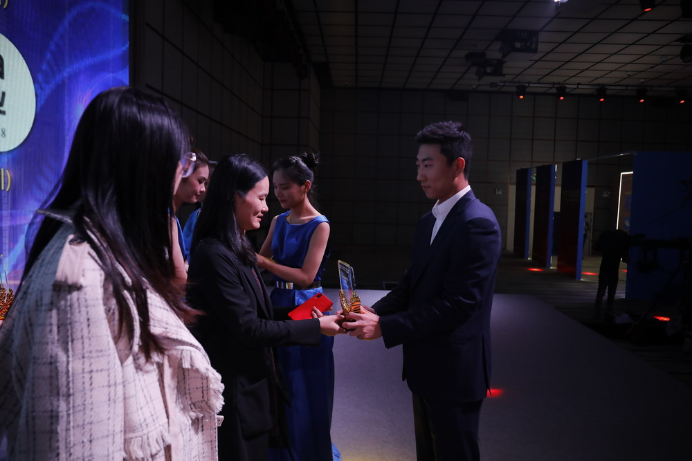 水贝珠宝集团副总裁卢森荣为“房地产行业最受网民欢迎品牌”颁奖。