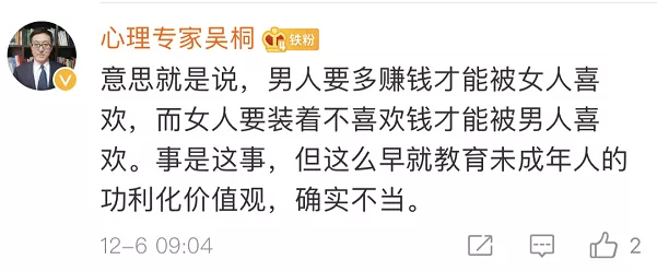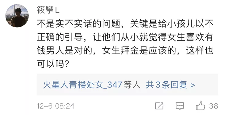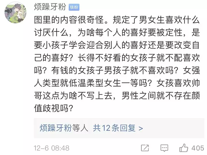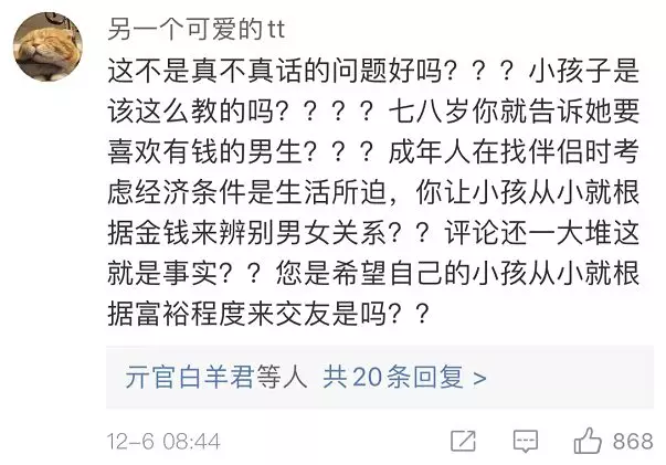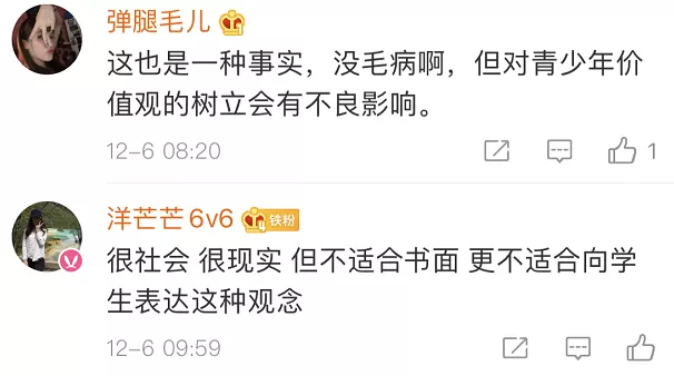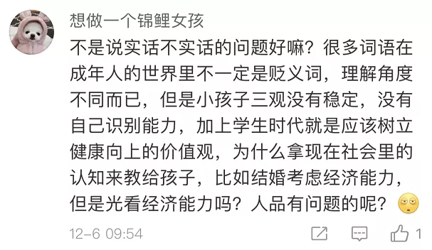也有网友觉得,出发点是好的,内容在成人看来或许有其“合理性”,但不应该拿来这样教孩子。