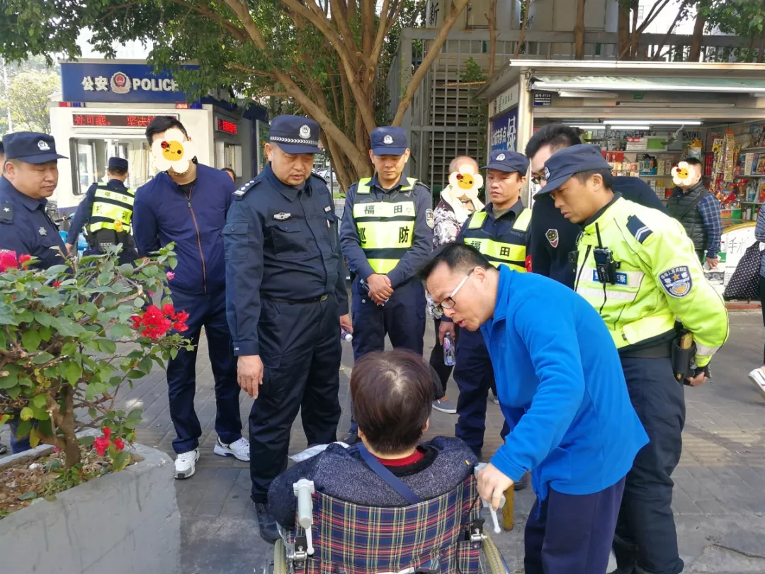 12月10日10时许,深圳市公安局福田分局景田派出所民警张锦雄在辖区巡逻时发现,一老人晕倒在路边。张锦雄及时上前将老人扶起,过了一会后,老人醒来并能小声说话,告知民警身体没有大碍,不用通知120救护车。张锦雄表示可以送老人回家,老人回答说先休息一会,并将其儿子电话告诉张锦雄,于是张锦雄及时联系上了老人家属,还从附近物业借来轮椅,让老人家暂时坐在轮椅上休息。不一会,老人儿子赶到现场将老人接回。离开时,老人和家属再三向参与救助的警力表示感谢。