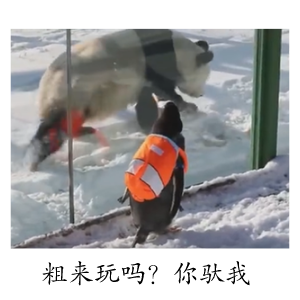 前几天,一只企鹅坐火车到亚布力景区,和两只大熊猫“面基”。