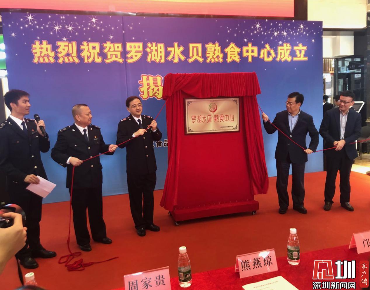 黄敏副市长、市市场监管局局长邝兵、罗湖区副区长文忠及深圳市市场监管局、罗湖区政府有关负责同志为罗湖水贝熟食中心揭牌