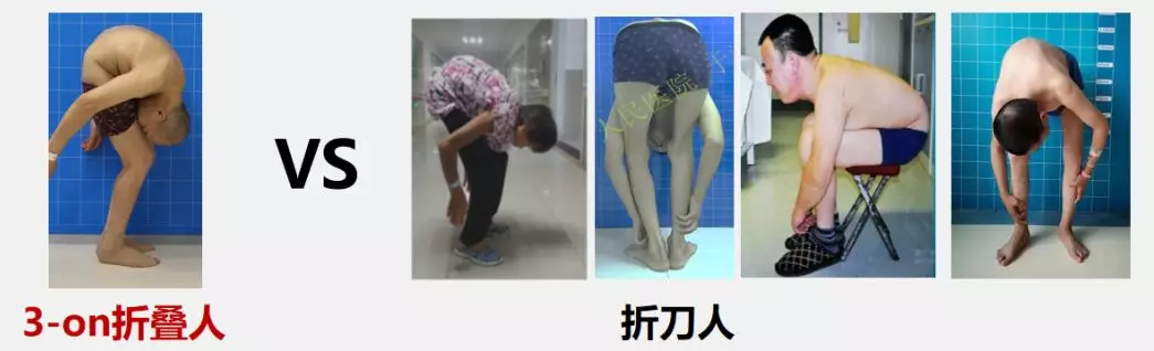 医生表示,临床上偶有见到强直性脊柱炎非常严重的“折刀人”,但像李华这样的实属罕见。“折刀人”在国内并不少见,但像李华这样的“折叠人”,很可能是第一个,一字之差,救治的难度翻倍。