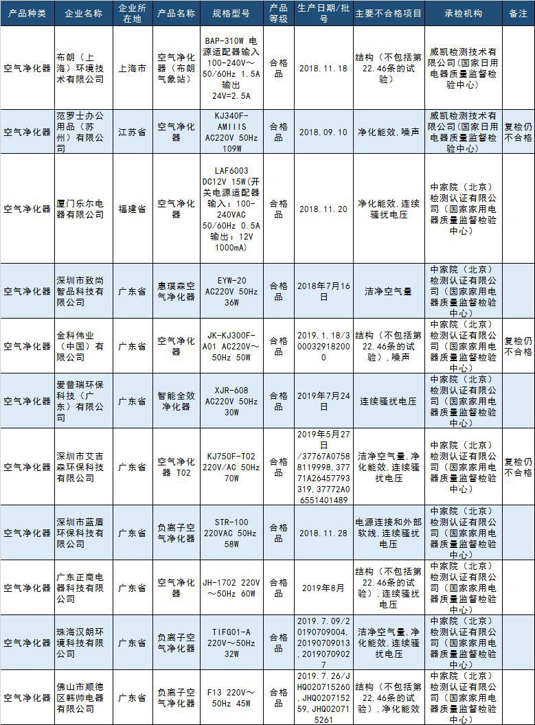 其中,深圳市艾吉森环保科技有限公司生产的空气净化器复检仍不合格。