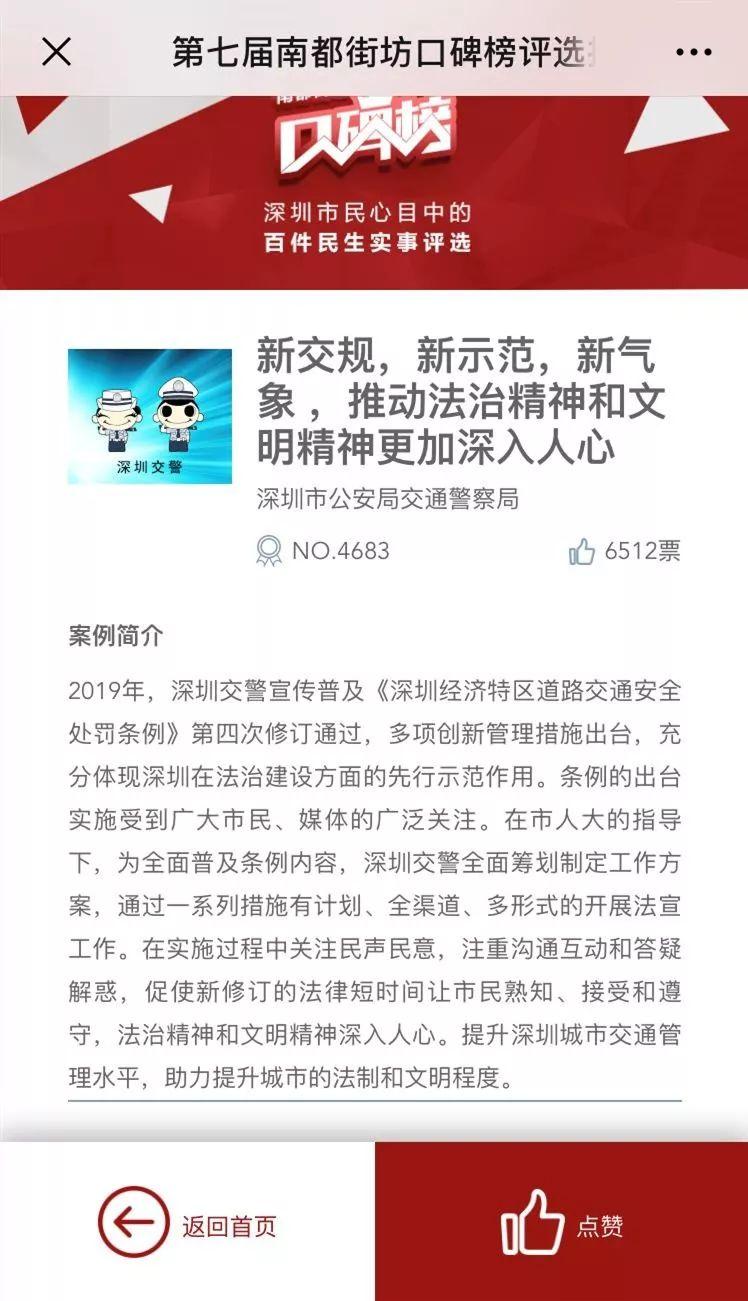 2019年,深圳交警宣传普及《深圳经济特区道路交通安全处罚条例》第四次修订通过,多项创新管理措施出台,充分体现深圳在法治建设方面的先行示范作用。