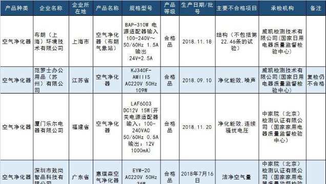其中,深圳市艾吉森环保科技有限公司生产的空气净化器复检仍不合格。