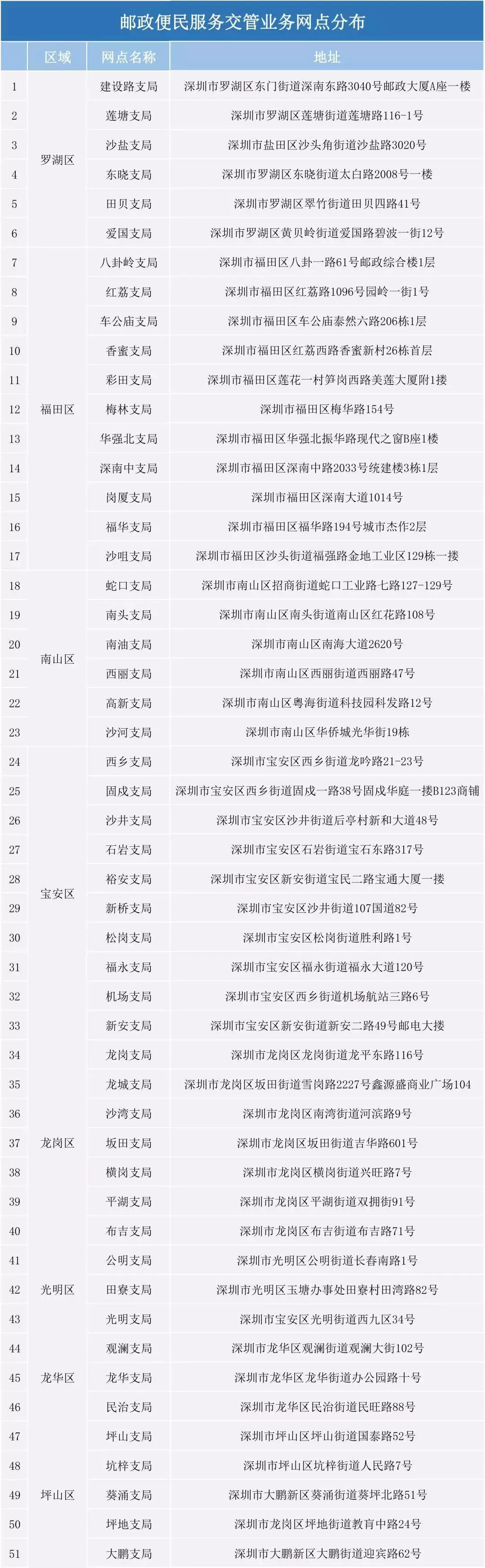 深圳车管所联合邮政开设邮政便民服务交管业务网点,实现部分车驾管业务前置受理,群众可免往返车管所,选择就近的警邮合作网点办理。