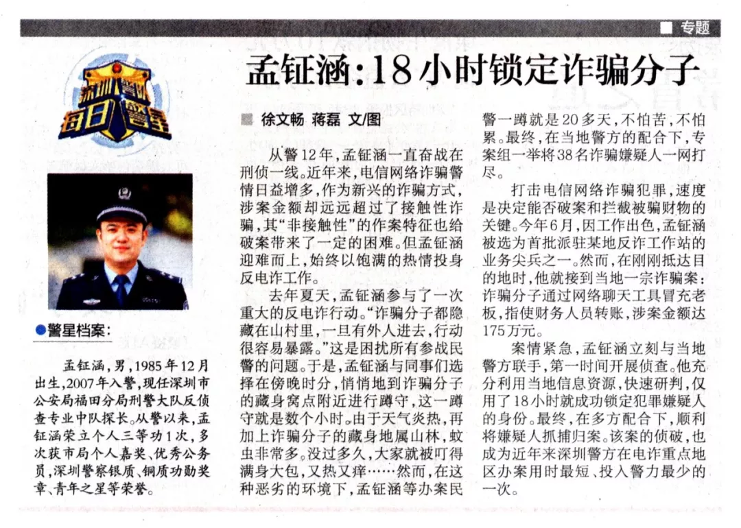 每日警星 | 孟钲涵:18小时锁定诈骗分子