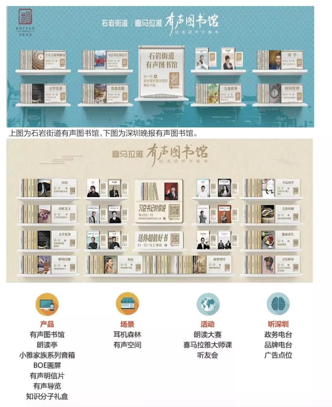 未来,喜马拉雅听深圳频道将构建以“有声图书馆”“喜马拉雅朗读亭”“智慧党建”等产品为体系的有声城市解决方案,以独特的创意方式,助力城市公共文化服务升级,为深圳用户提供最优质的创意营销解决方案,并将协同深圳各级部门,深入社区街道,记录城市声音,搭建有声内容产品矩阵。