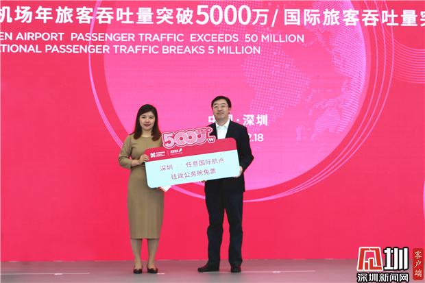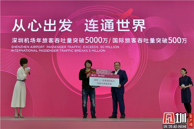深圳机场2019年度第5000万名幸运旅客获得深航送出的机票。