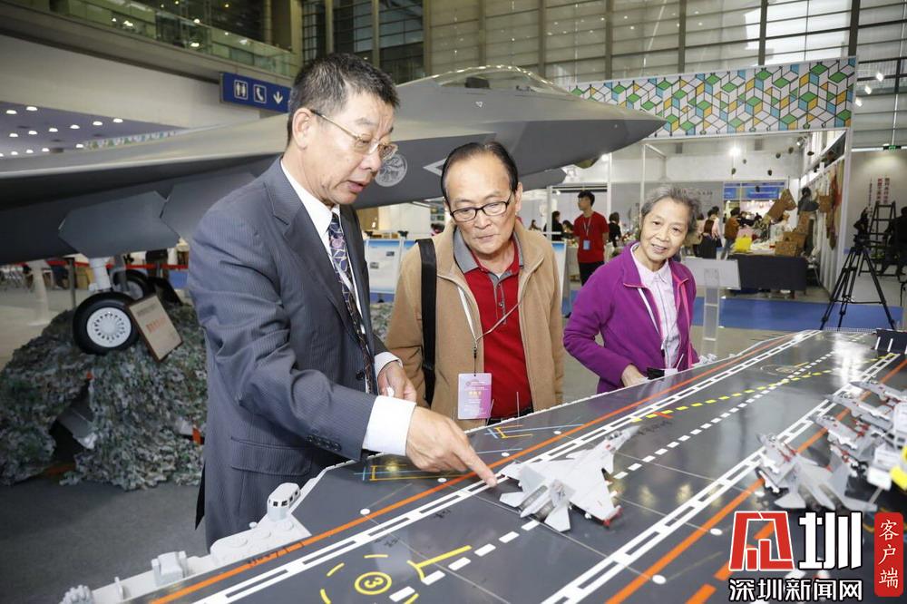 深圳市博尔创意文化发展有限公司董事长、广东省工艺美术协会副会长孙延波正向参观的市民介绍模型。