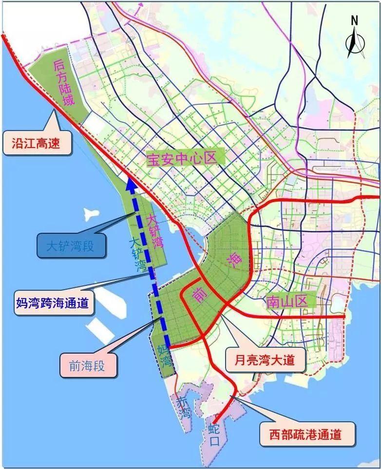 西部片区的货运交通可以不走月亮湾大道,直接通过妈湾跨海通道进行疏解。