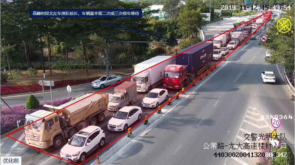 公常/龙大路口位于光明区新湖街道办,是光明区北部重要的交通枢纽路口。其中公常路为东西走向主干道,与多条主干道及龙大高速相连接,是光明区北部重要的货运及通勤道路。