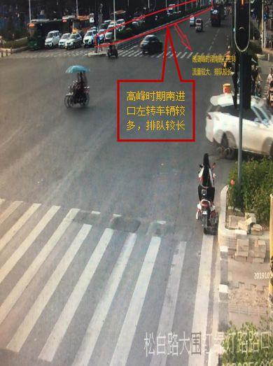 高峰时段北左车排队较长,车辆基本需要二次或三次停车等待。