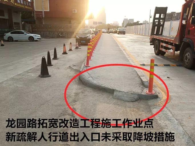 慢行系统不连贯或横断面不足,造成现场人车混行、机非混行;
