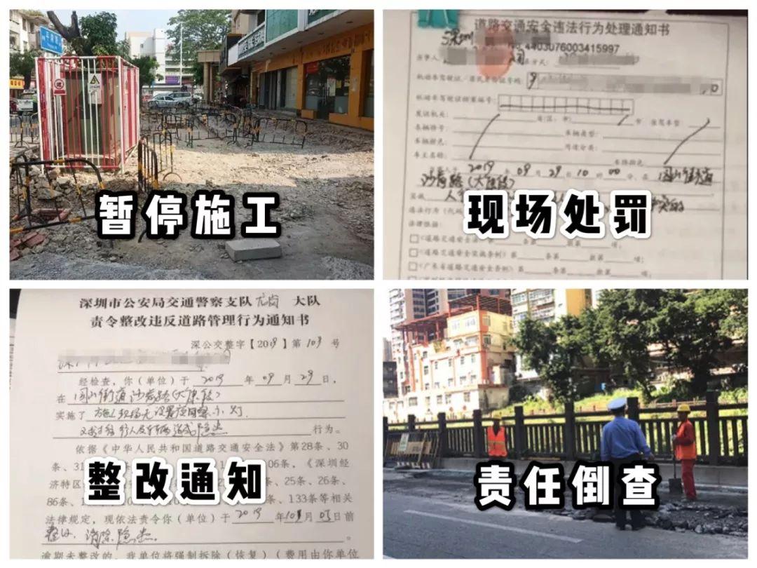深圳交警依法对以上两家占道施工单位开具处罚通知书,处以罚款10000元,并责令立即完善相关警示标志和安全措施设置。