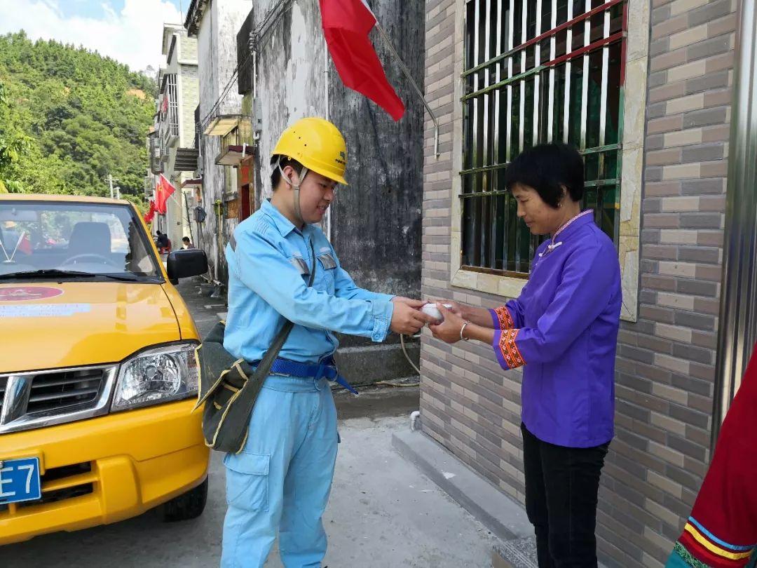 这是2019年国庆节前深汕供电局到红罗畲族村开展用电检查志愿活动时的场景,工作人员为村民更换了32块新电表箱、挨家挨户开展用电安全检查及宣传普及用电安全知识。