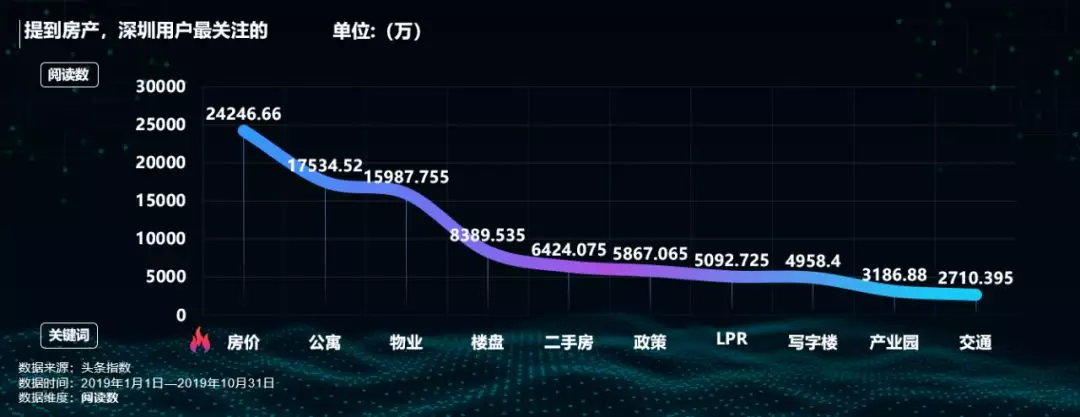 数据显示,今年提到房产,深圳网友最关注的是“房价”、“公寓”、“物业”这三大关键词。