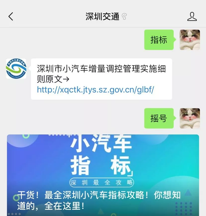 另外,发送消息“摇号”、“指标”至“深圳交通”微信公众号,可获取相关办理流程指南。