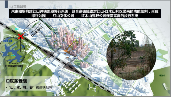 目前的北站,“山、水、城、谷”被高铁阻段,跨铁路慢行系统的建设就很重要啦