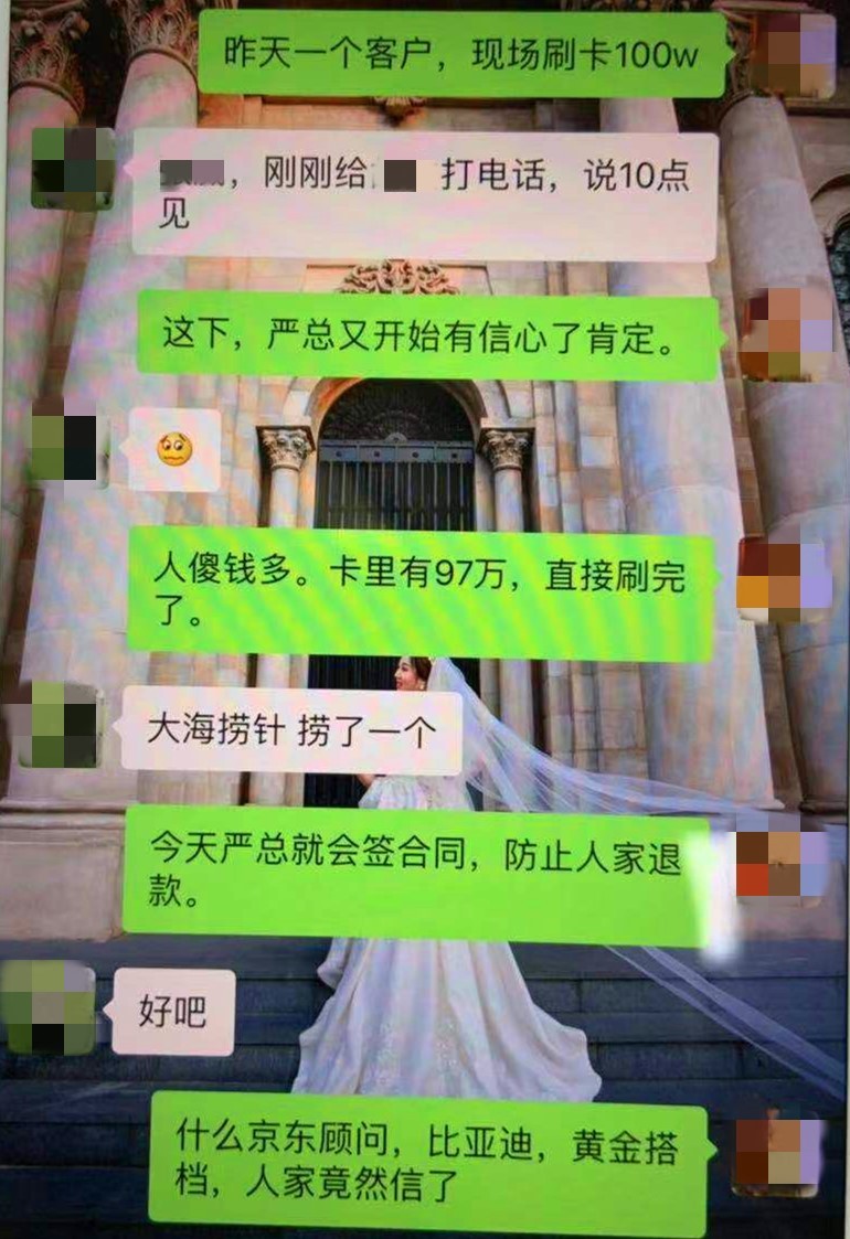 受害人李红(化名)是在看到“某古烁今”诈骗案的新闻后,意识到“中某时代”的行骗手段如出一辙,所以赶来龙岗报案。据李红讲,她本来经营一间家政公司,去年5月,听了“严老师”的一次讲座。课上“严老师”自称给阿里巴巴、富士康、中国联通、汇丰银行等企业做过顾问,帮助过数千家企业快速成功转型。“严老师”承诺:“有资金的,可以帮助找项目;没资金的,可以帮助融资……”在“严老师”打保票可以为她融资后,李红交了10万元。可交了钱后,“严老师”除了给她手写了几页纸的《月子中心策划方案》,便再无下文。当失望至极的李红表示要报警时,公司则威胁,如果报警,就按照毁约起诉她,并将索赔300万。与李红有类似遭遇的,不在少数。警方在公司查获到多名客户的投诉信息,有客户甚至谴责公司骗了她卖房子的血汗钱。