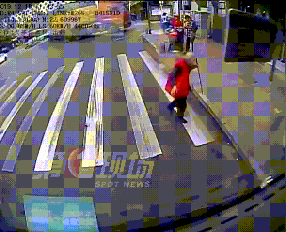 令人没想到的是,当这位老人家准备踏上街边的台阶时,由于步履匆忙没有站稳,一下跌坐在地上了。