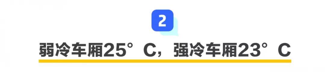 其实,强冷车厢的温度与目前车厢温度保持一致,而弱冷车厢的温度则是在此基础上调2°C。
