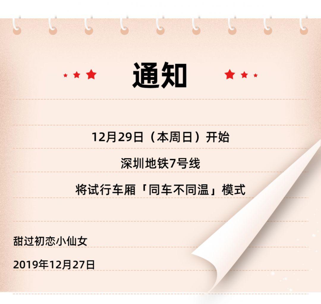 深圳地铁7号线将上线「同车不同温」模式,同一列车,分设「强冷」和「弱冷」两种车厢。