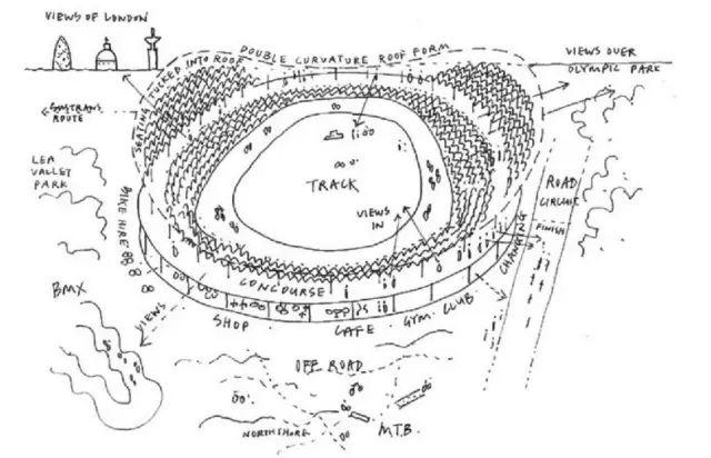 这是2012伦敦奥运会室内自行车馆当年在100项设计方案里胜出