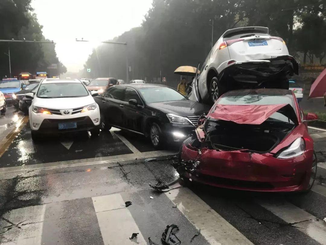 五车相撞现场多车发生碰撞,飞跃“叠罗汉”?