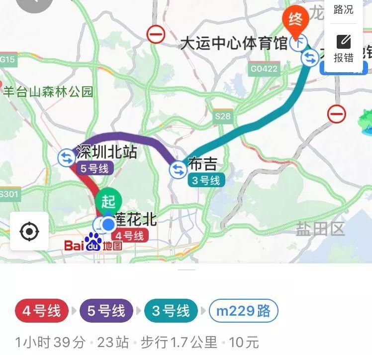 地铁出站后导航步行至大运中心体育场(约1.9KM)。