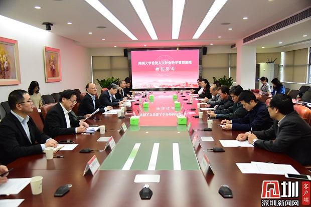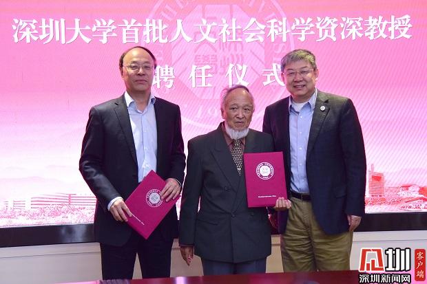 见圳客户端·深圳新闻网2019年12月30日讯(见圳客户端、深圳新闻网记者 余俐洁 通讯员 王若琳 庞审)12月30日,深圳大学首批人文社会科学资深教授聘任仪式在深圳大学(以下简称“深大”)会议室举行。深大聘任刘洪一教授为“深圳大学人文社会科学资深教授”,授予胡经之教授“深圳大学人文社会科学荣誉资深教授”称号。至此,深大有了自己的“文科院士”。