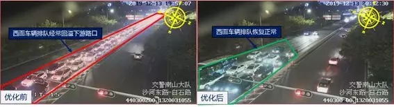 蜀黍现场调研排查时发现,该路口交通流量近期出现变动,晚高峰车辆消散时间延长,19时30分至20时期间,白石路东行车流量仍较大,车辆排队较长。