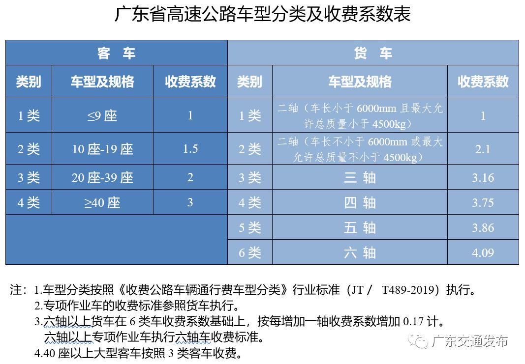 自2020 年1月1日零时起,全省高速公路(港珠澳大桥主体工程除外)调整计费方式,统一执行《收费公路车辆通行费车型分类》(JT/T489-2019)。