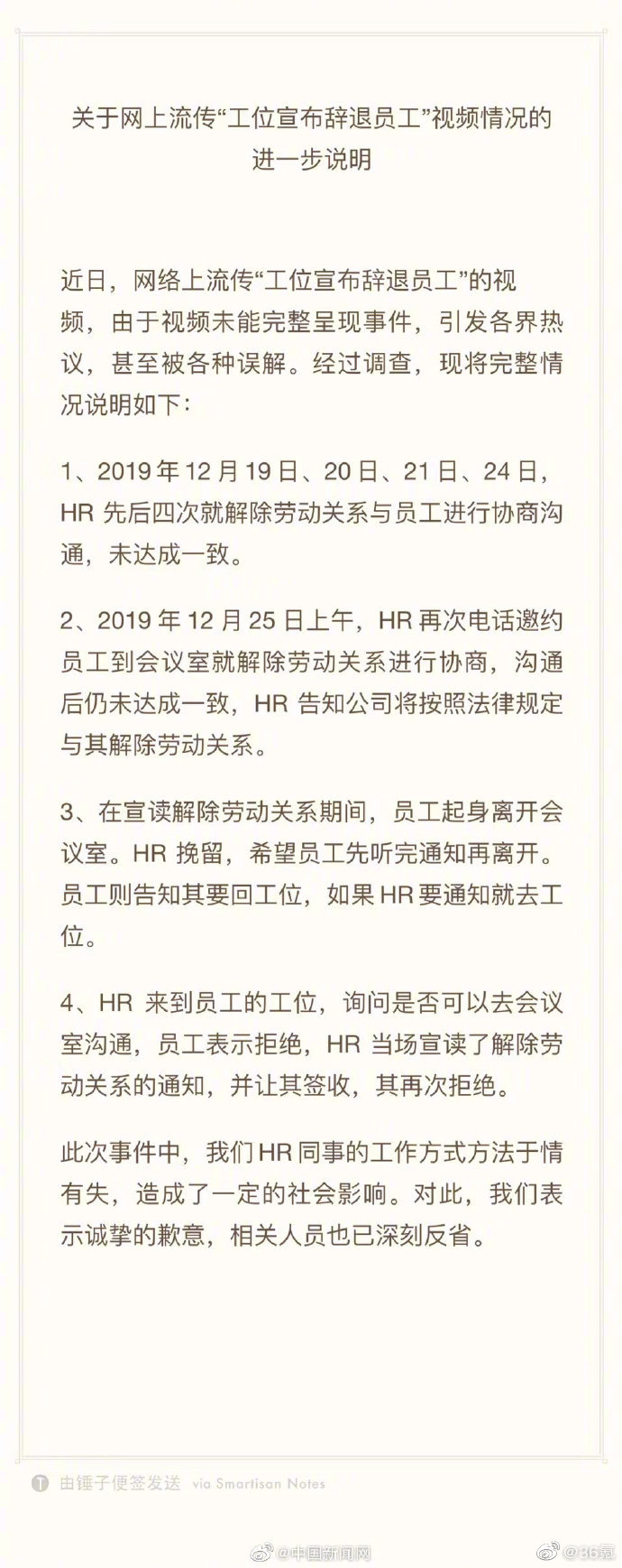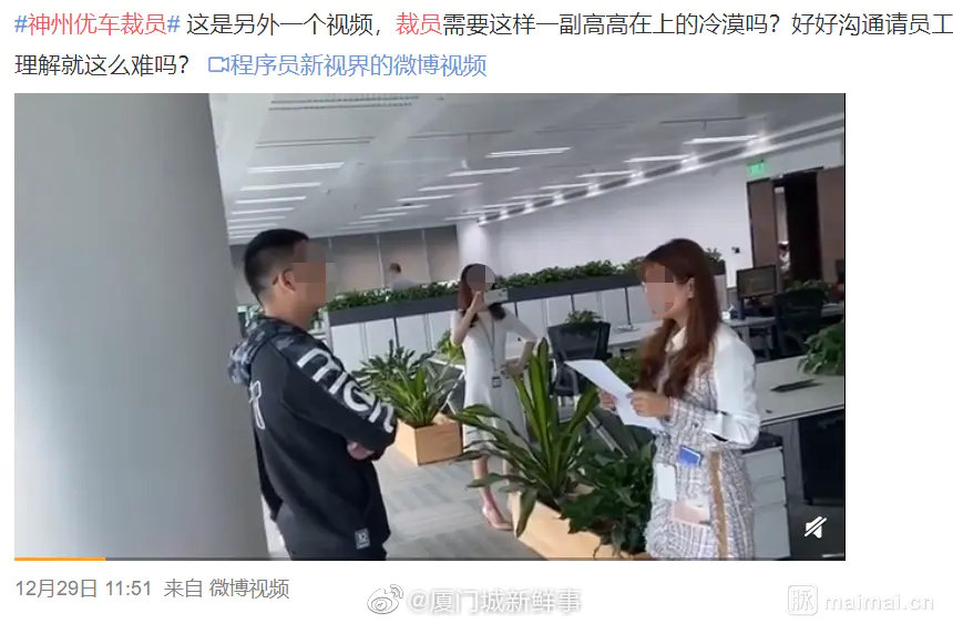见圳客户端.深圳新闻网2019年12月31日讯(见圳客户端、深圳新闻网记者 张玲)年底等着拿年终奖的时候,突然接到一纸通知“你不合格,你被解雇了”。2019年年底,厦门神州优车HR(人力资源小姐姐)拿着解除劳动关系通知书到工位让员工签字的视频引起不小争议。