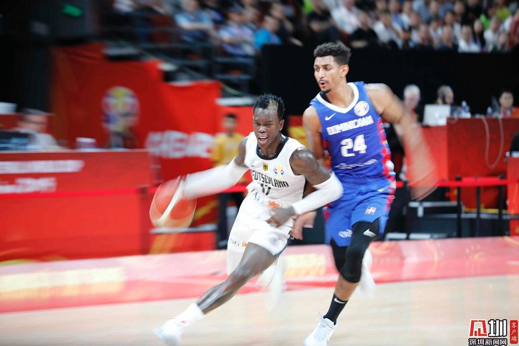 2019年9月3日,深圳湾体育馆,男篮世界杯深圳赛区在此举行,在德国对阵多米尼加的比赛中,德国球员施罗德带球突破。