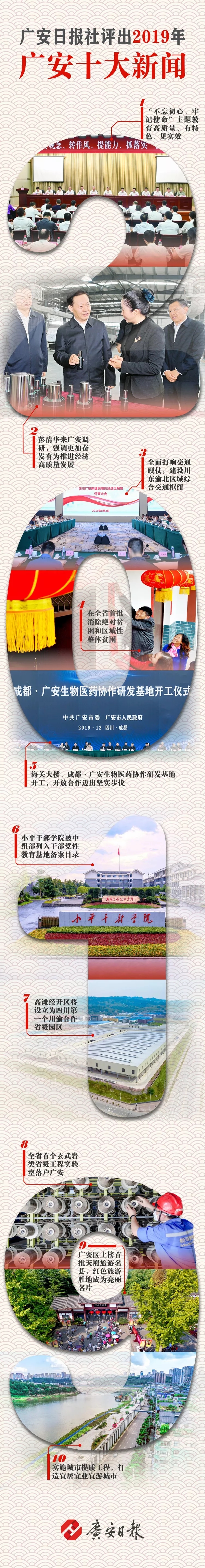 回望来时路,砥砺再出发。广安日报社评出了2019广安十大新闻,再次回味一年中广安发展道路上的里程碑事件,再次感受广安铿锵前进的步伐。