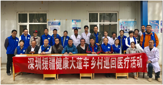 吴志强(一排右数第四)率第九批第二期深圳援疆医疗队赴塔县大同乡实施“深圳援疆健康大篷车乡村巡回医疗”活动。