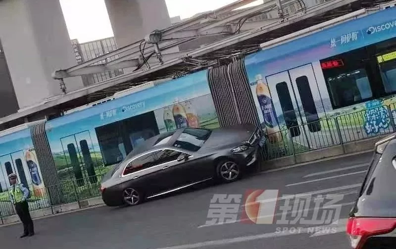 原标题:突发!龙华一奔驰车撞上有轨电车 事故并未造成人员受伤