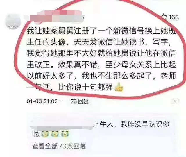 “牛人,我咋没早点认识你呢?”“人才啊”……此奇招一出,家长们纷纷感叹。也有家长担心:“万一穿帮了,对孩子伤害很大,家长信用大打折扣!”