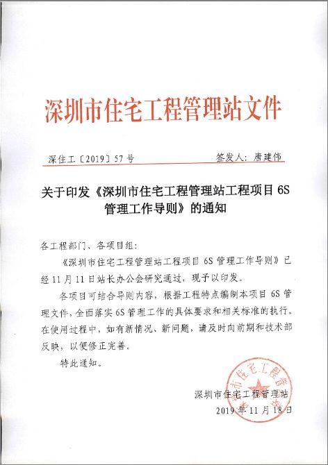 制定实施《深圳市住宅工程管理站工程项目6S管理工作导则》《深圳市住宅工程管理站重型施工机械安全管理实施细则》。