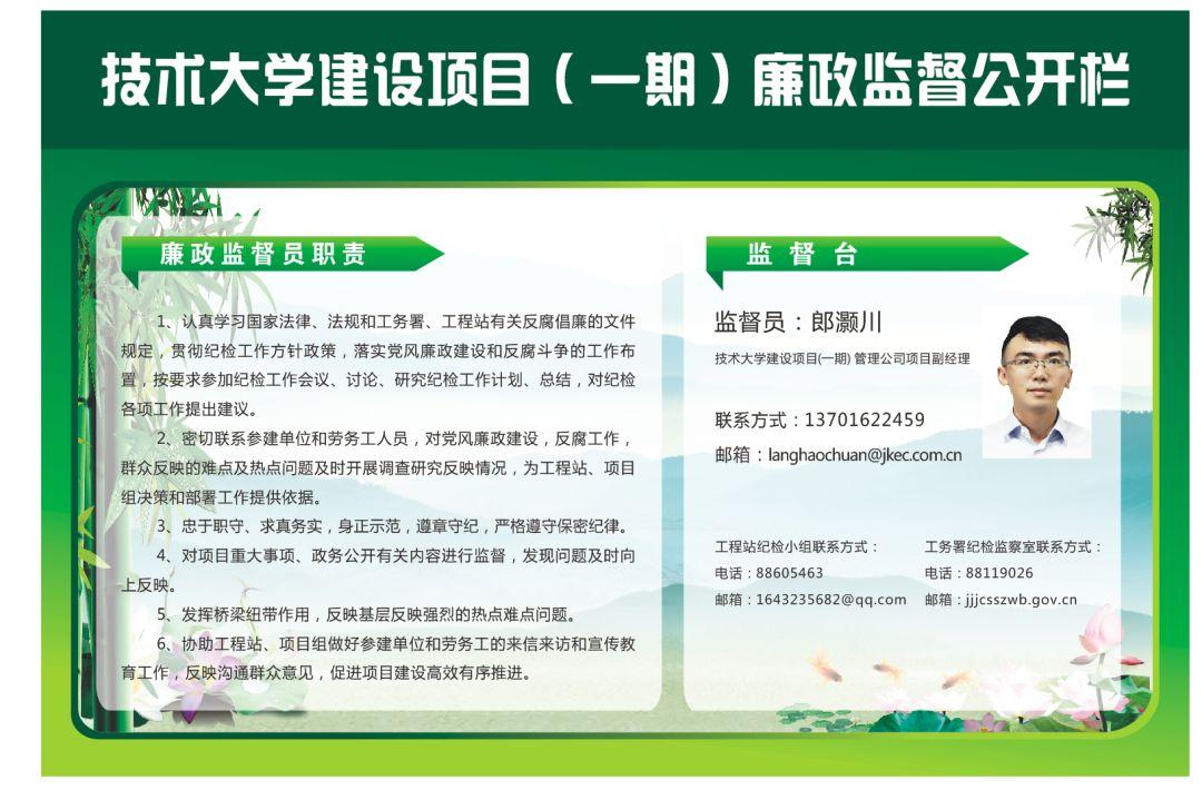 聘请各项目总监作为廉政监督员,设置“廉政监督公开栏”,明确廉政监督员信息及职责。